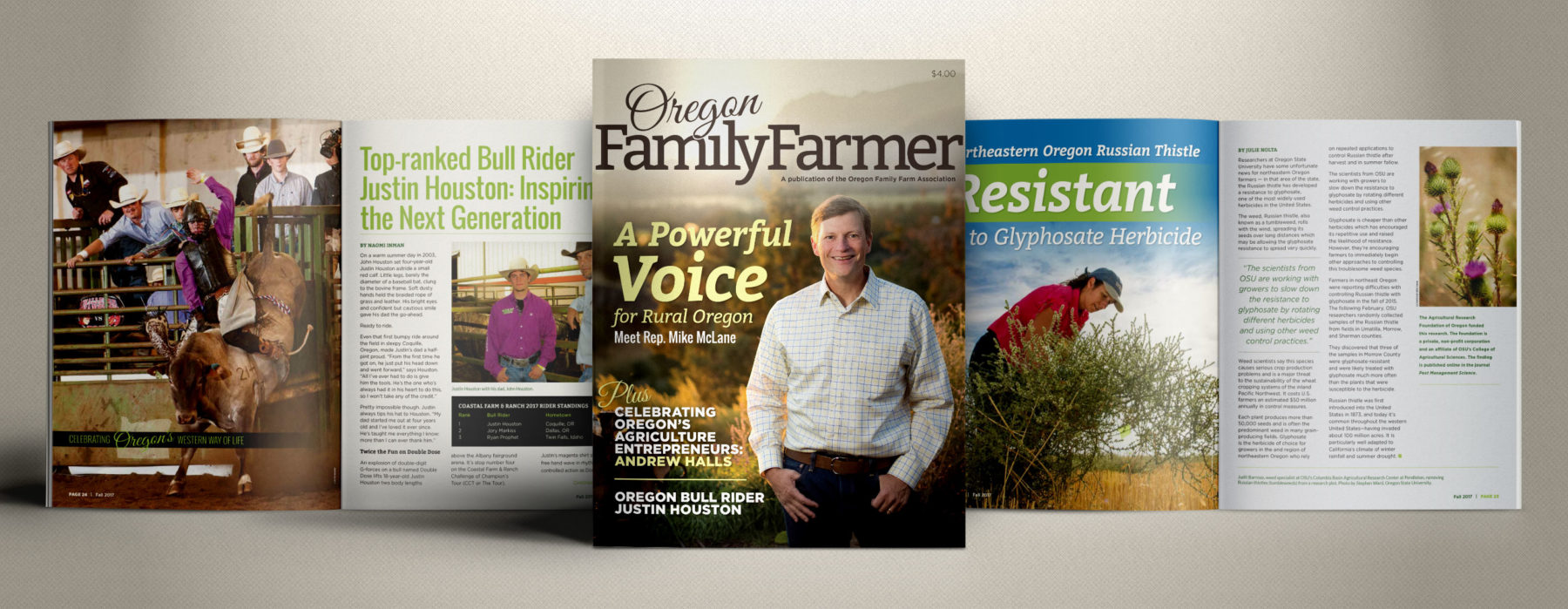Oregon Family Farmer is a magazine created to promote and support the agricultural industry in Oregon. It covers a variety of topics, from profiles of farmers and industry leaders to articles that highlight legislation and issues that affect the farming community. This is just the fifth issue, but the magazine is already receiving a great response.