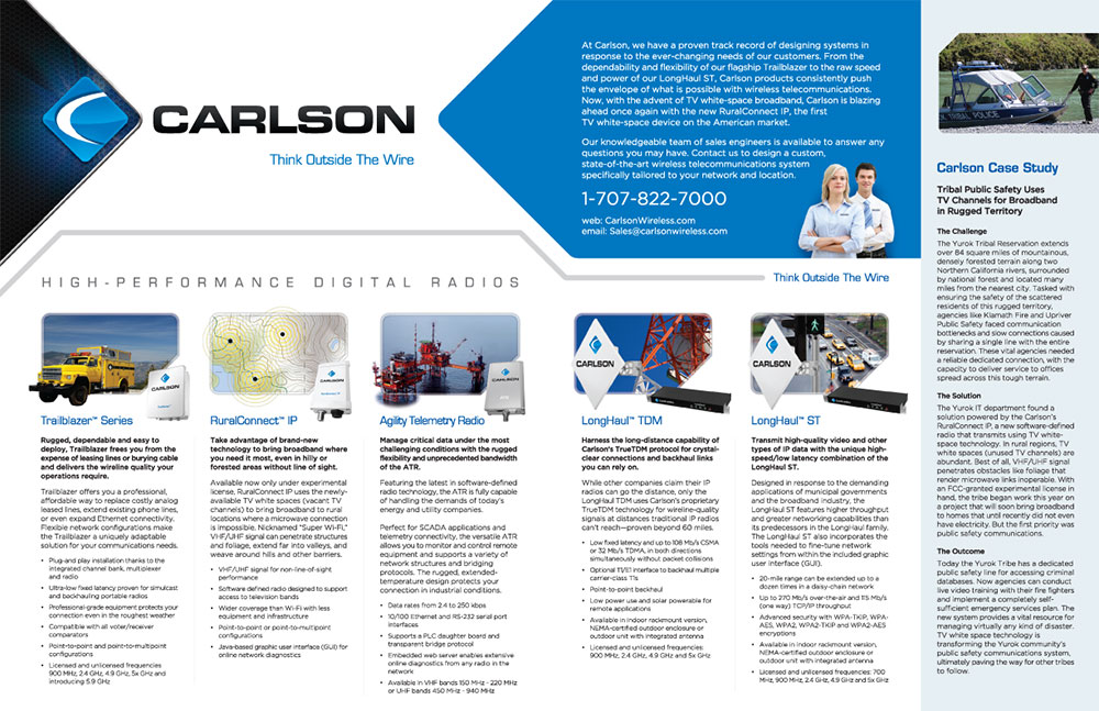 California-based Carlson Wireless Technologies, Inc., (CWT) is a leading radio equipment manufacturer, pioneering wireless communications for rural and remote environments since 1999. Known for his visionary research and product development, founder and CEO James Carlson is a longtime advocate for rural wireless broadband. An early supporter of freeing unused TV spectrum for public use, CWT has developed the world’s first affordable high-speed white space broadband solution.