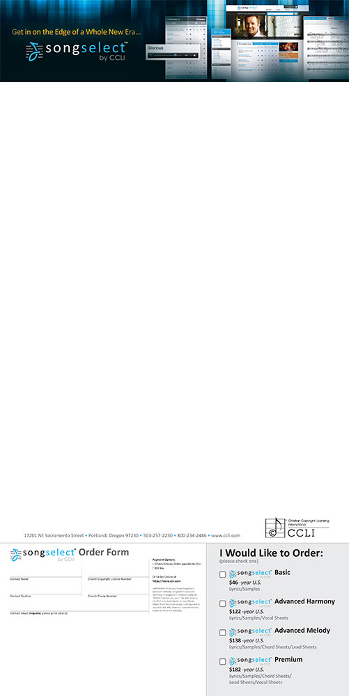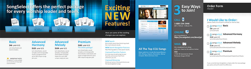 DesignPoint has designed SongSelect’s brochures, mailers, order forms, pricing tables, magazine and online ads.
