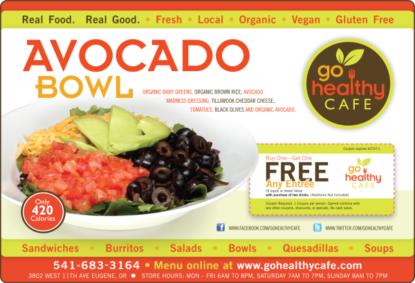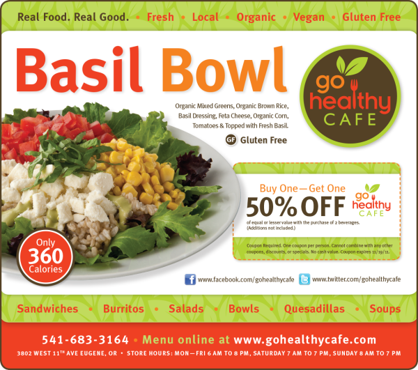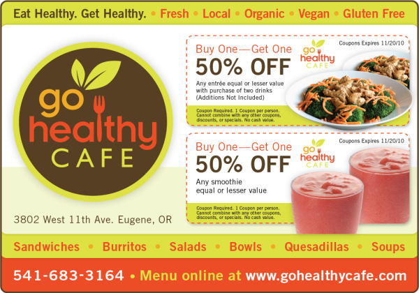 Go Healthy Cafe offers fresh, organic, local food and drinks to customers in the Eugene area. They have vegetarian, vegan and gluten-free options to choose from.