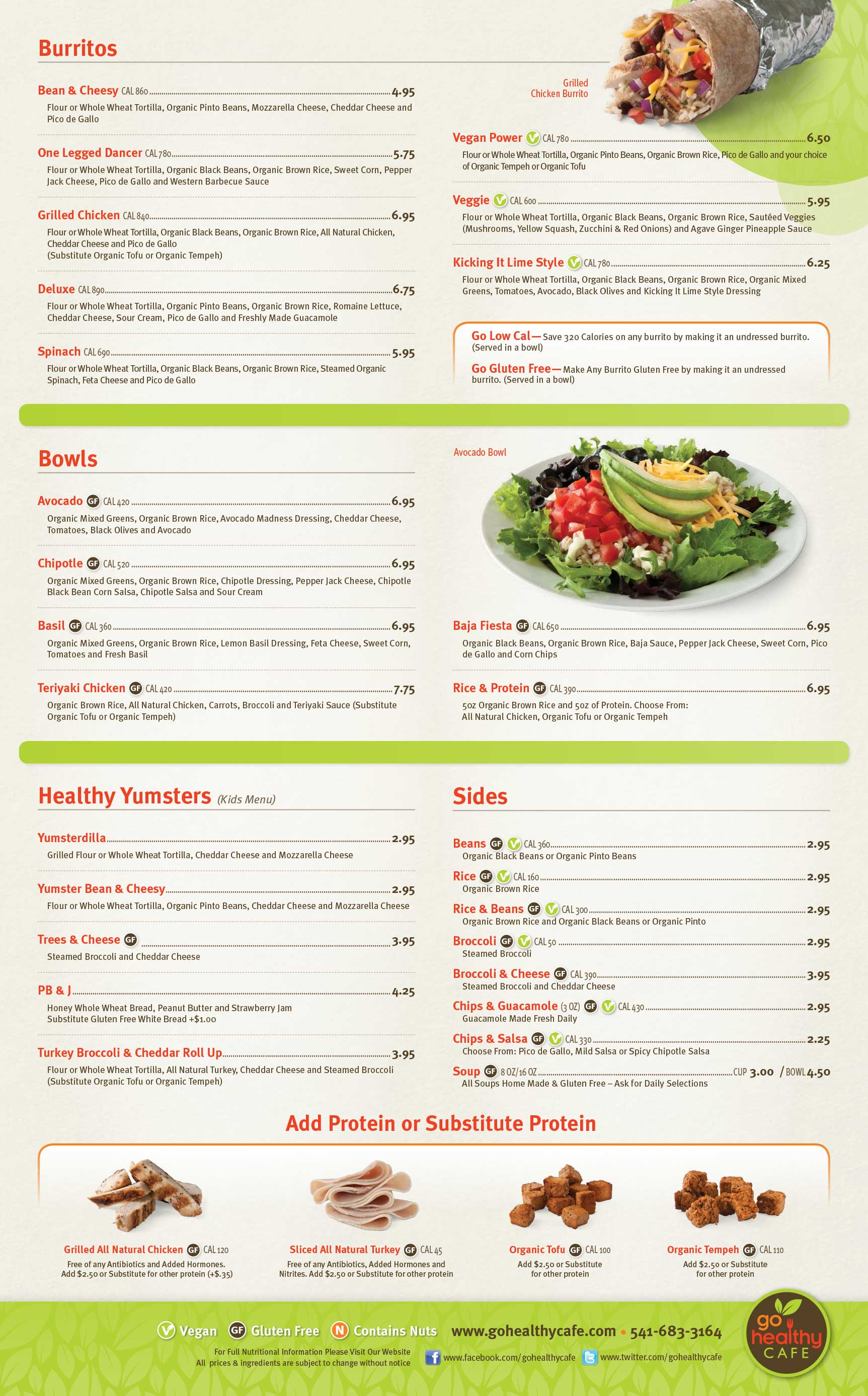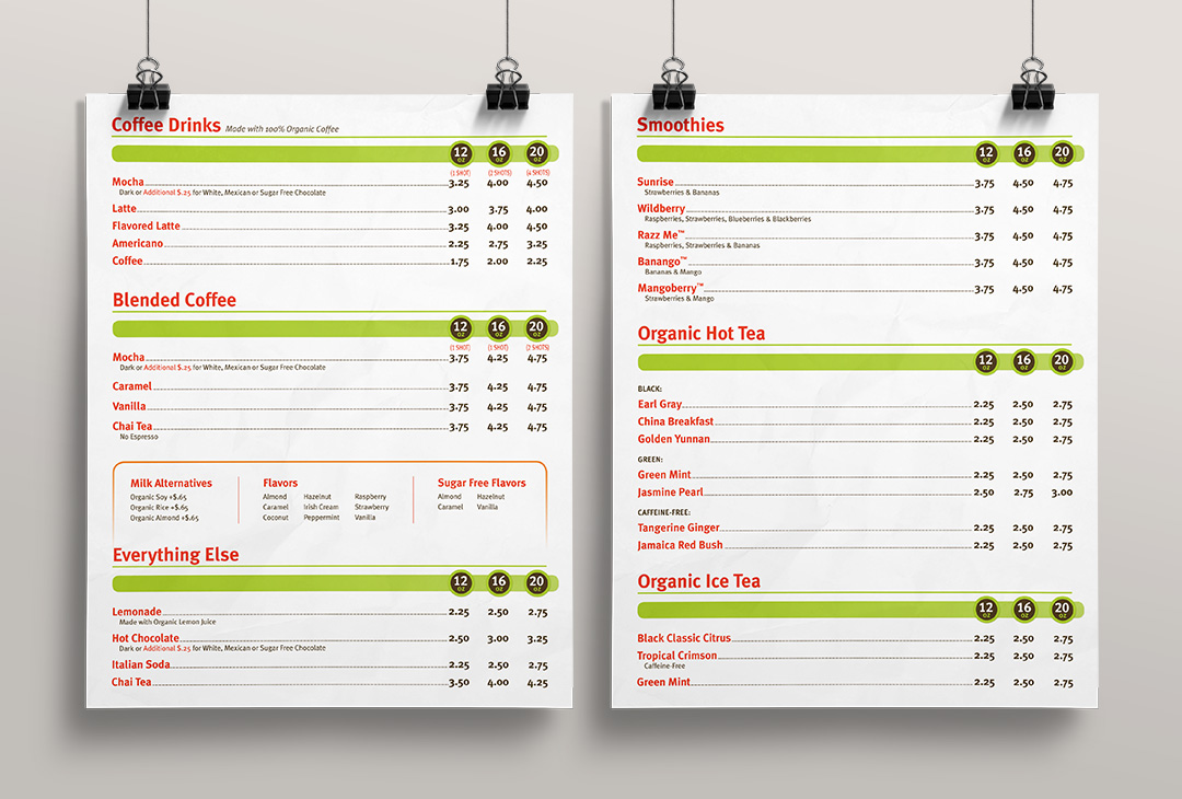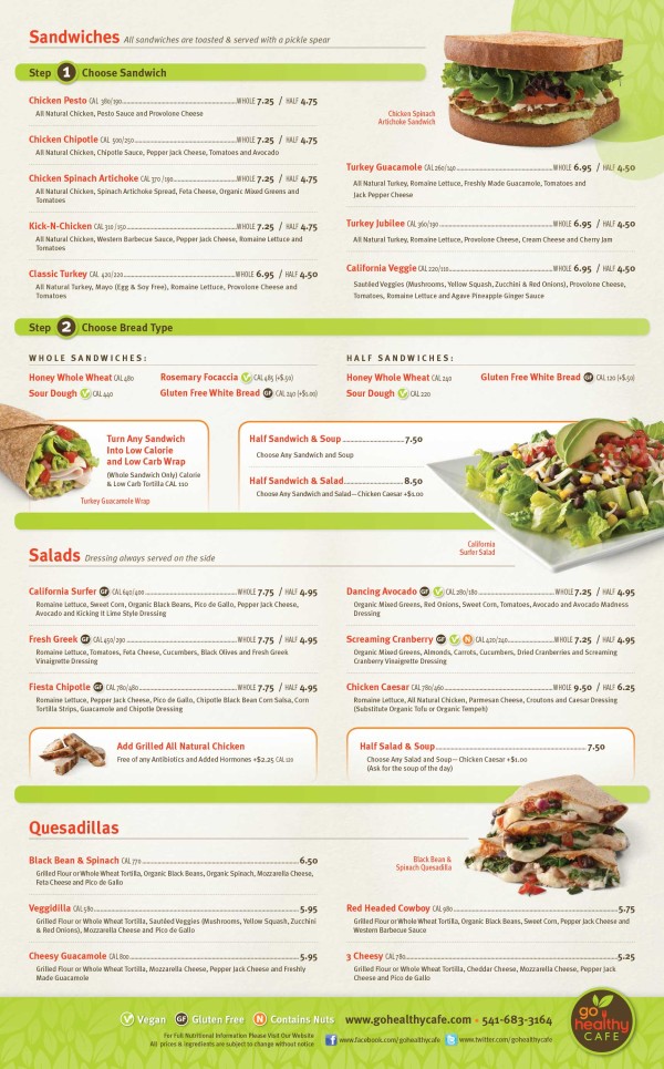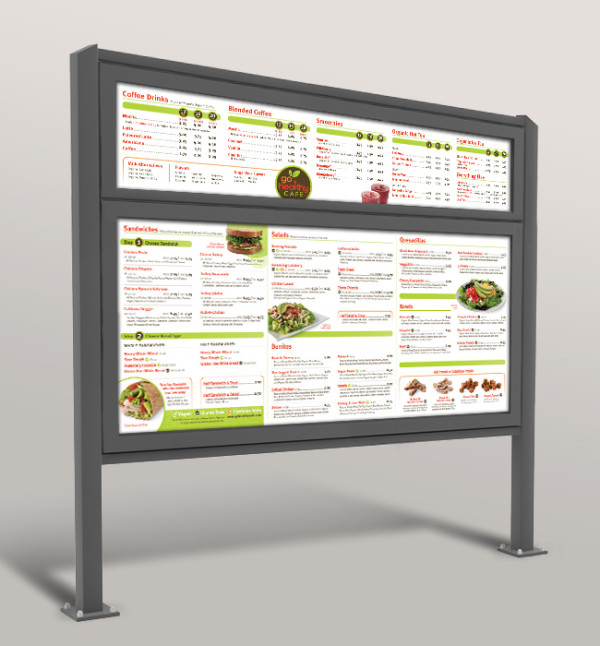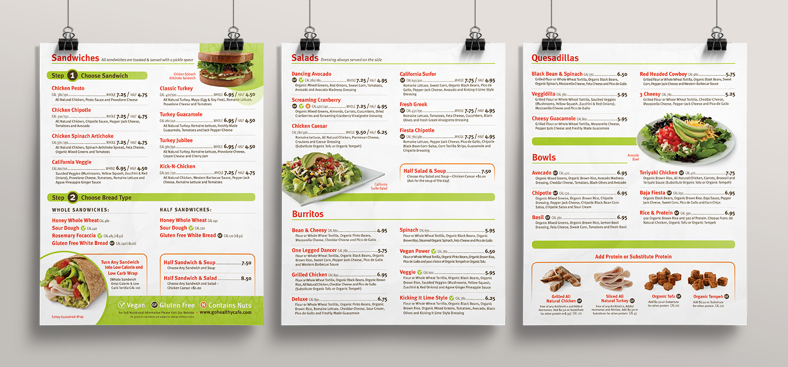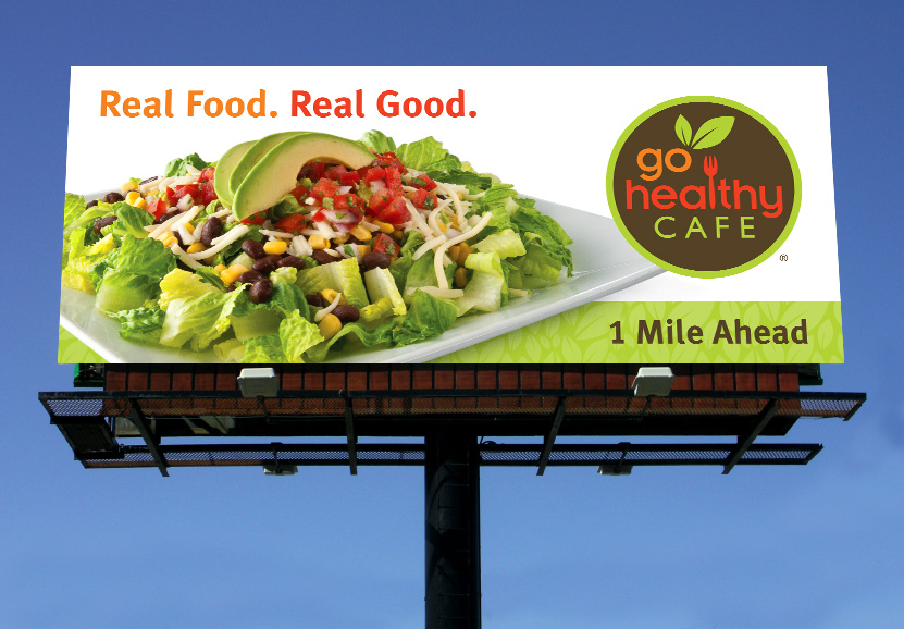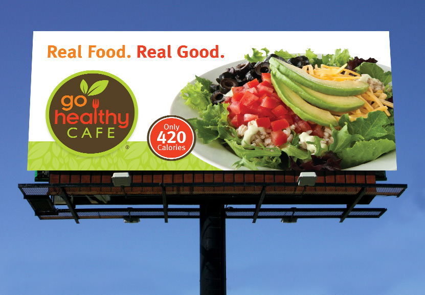 DesignPoint designed Go Healthy Cafe’s logo, menus, publication ads, point of purchase displays, billboards, gift cards, and more.