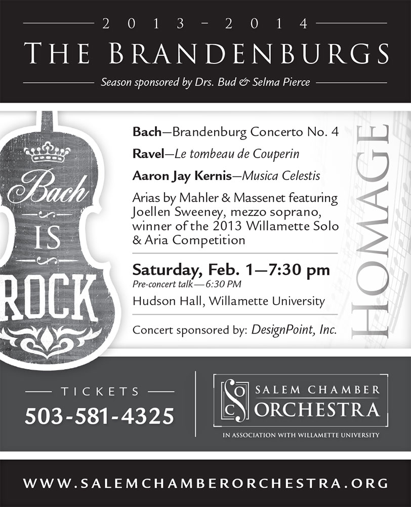 DesignPoint has designed Salem Chamber Orchestra’s brochures, mailers, posters, stationery, stickers, program covers and responsive WordPress website.