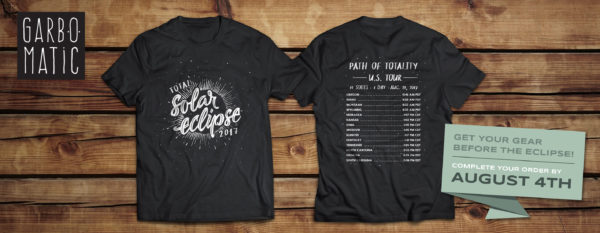 Are you ready for the total solar eclipse on August 21st? Make sure you’re outfitted with our new design! Get a t-shirt, tank, sweatshirt, sticker or even something for the kids!